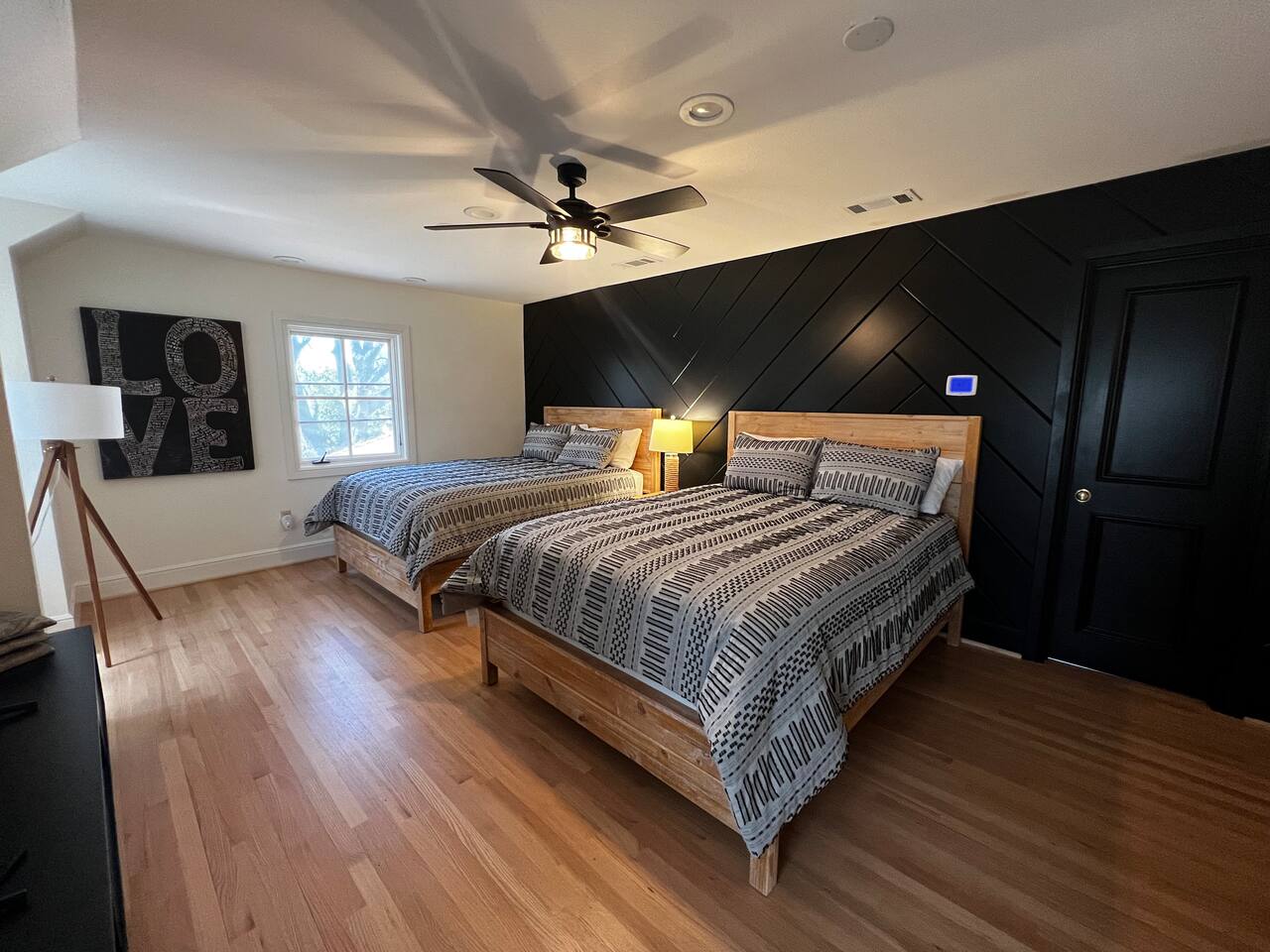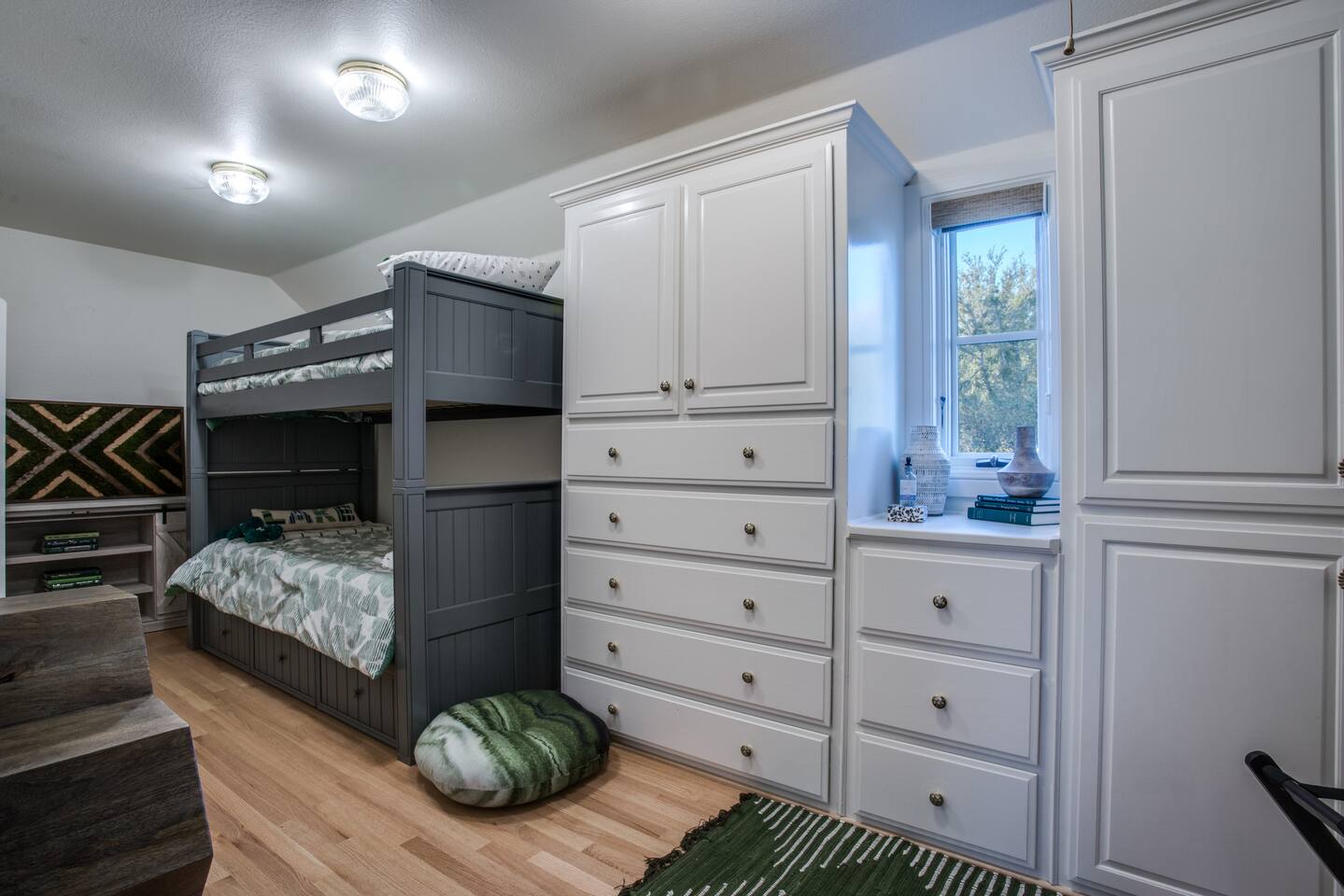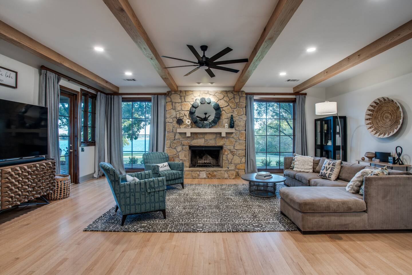 Welcome to your secluded lakeside paradise! This spacious 3,000 sq. ft. home offers a perfect blend of modern comfort and natural beauty, with stunning, unobstructed views of Lake Lewisville from its main living areas. The heart of the home is the open-plan living room, which features a beautiful stone fireplace and opens directly onto a large patio, creating a seamless indoor-outdoor experience. The modern, fully-equipped kitchen is an entertainer's dream, complete with a large central island for your group to gather. Key Features: * **Sleeping Arrangements (Sleeps 10):** * Three private bedrooms * A separate bunk room for additional guests * **Work & Play:** * A dedicated office space for remote work or quiet study. * A ping pong table for friendly competition. * **Comfort & Style:** * Open-concept living and dining area. * Modern furnishings and decor throughout.