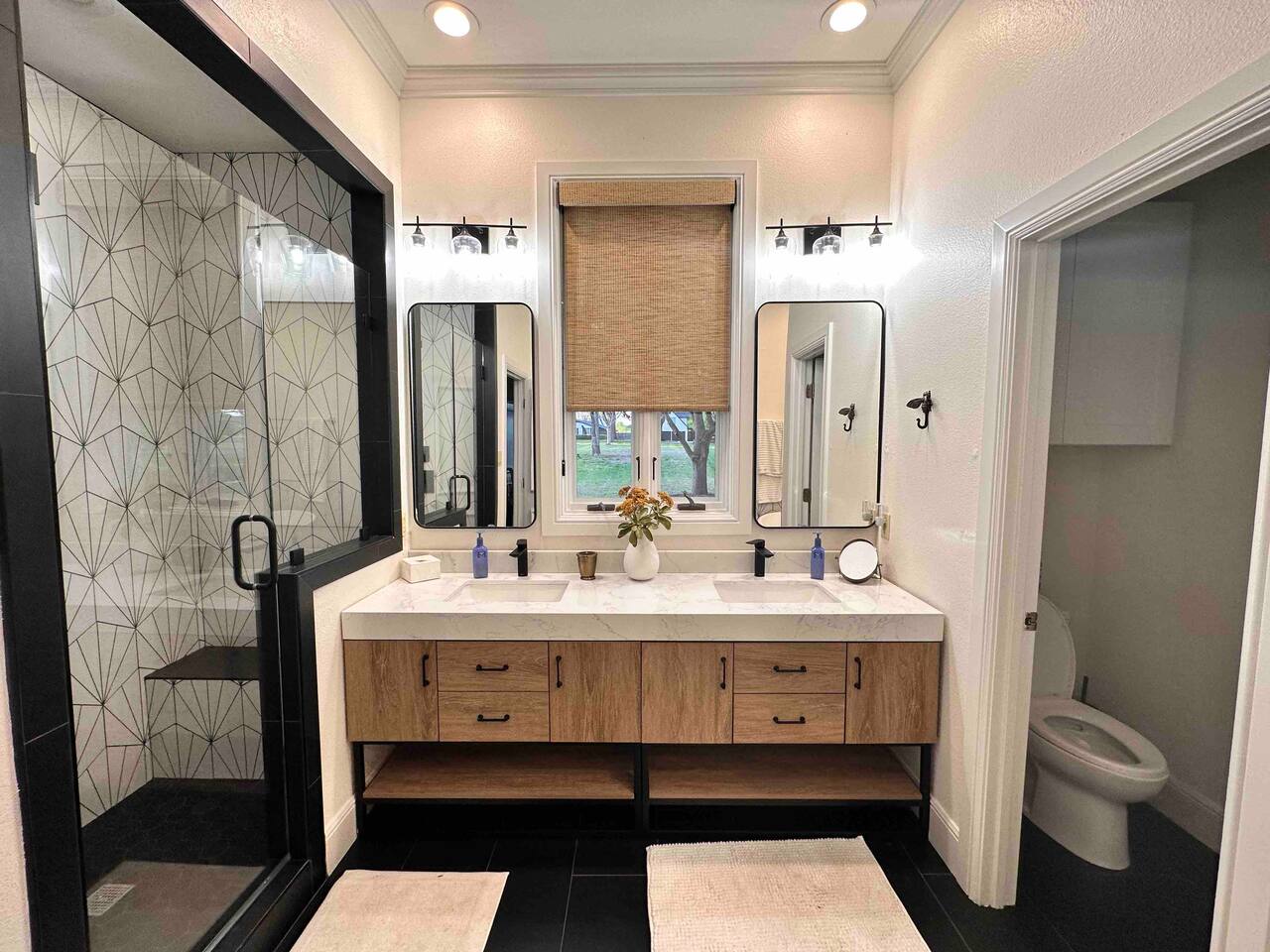 Guests will have exclusive and private access to the entire 3,000 sq. ft. home and the surrounding 1.6 acres of landscaped property. Your private lakeside oasis includes: * **Private Entrance:** Self check-in for your convenience. * **Entire Home:** Full access to all bedrooms, bathrooms, kitchen, living areas, and the dedicated office. * **Outdoor Amenities:** * Private hot tub with lake views. * Spacious patio with a stone fire pit. * Back patio swing under charming string lights. * **Lake Access & Equipment:** * Direct access to Lake Lewisville from the property. * Complimentary use of our kayaks and stand-up paddleboards.